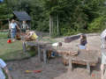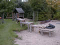 WasserlaufEines der langwierigsten Projekte war die Errichtung des Wasserlaufes im Außengelände der Kindertagesstätte. Körper- und Bewegungserfahrung stellen nicht nur wichtige Medien der Aneignung der Wirklichkeit dar, sie gelten vor allem in den ersten Lebensjahren als Grundlage der Indentitätsentwicklung des Kindes. Der Umgang mit Wasser und Sand fördert: - Motivation und Freude am Spiel - Steigerung der Sinneswahrnehmung im taktilen Bereich - Soziale Kompetenz und Kommunkiation - Steigerung der Oberflächen- und Tiefensensibilität